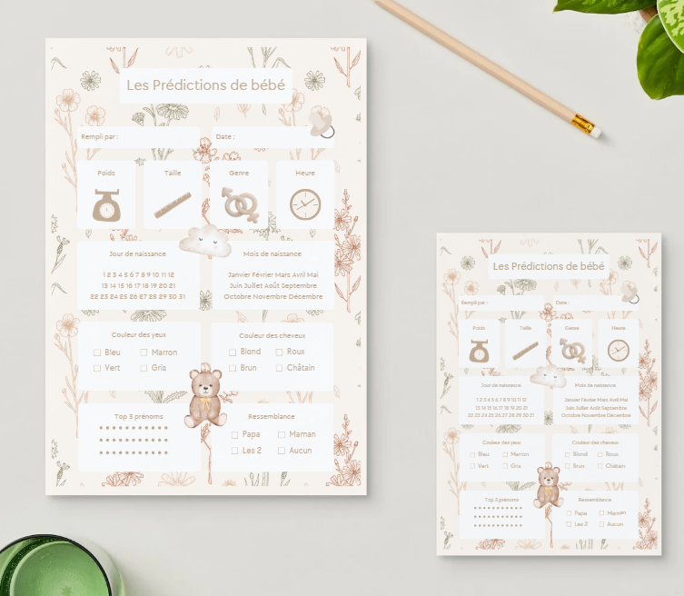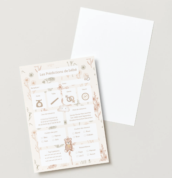Prêt à parier sur l'arrivée de bébé ? Donnez du peps à votre fête prénatale avec nos cartes de prédictions à imprimer. Un moment fun, convivial et un superbe souvenir pour la future maman !
